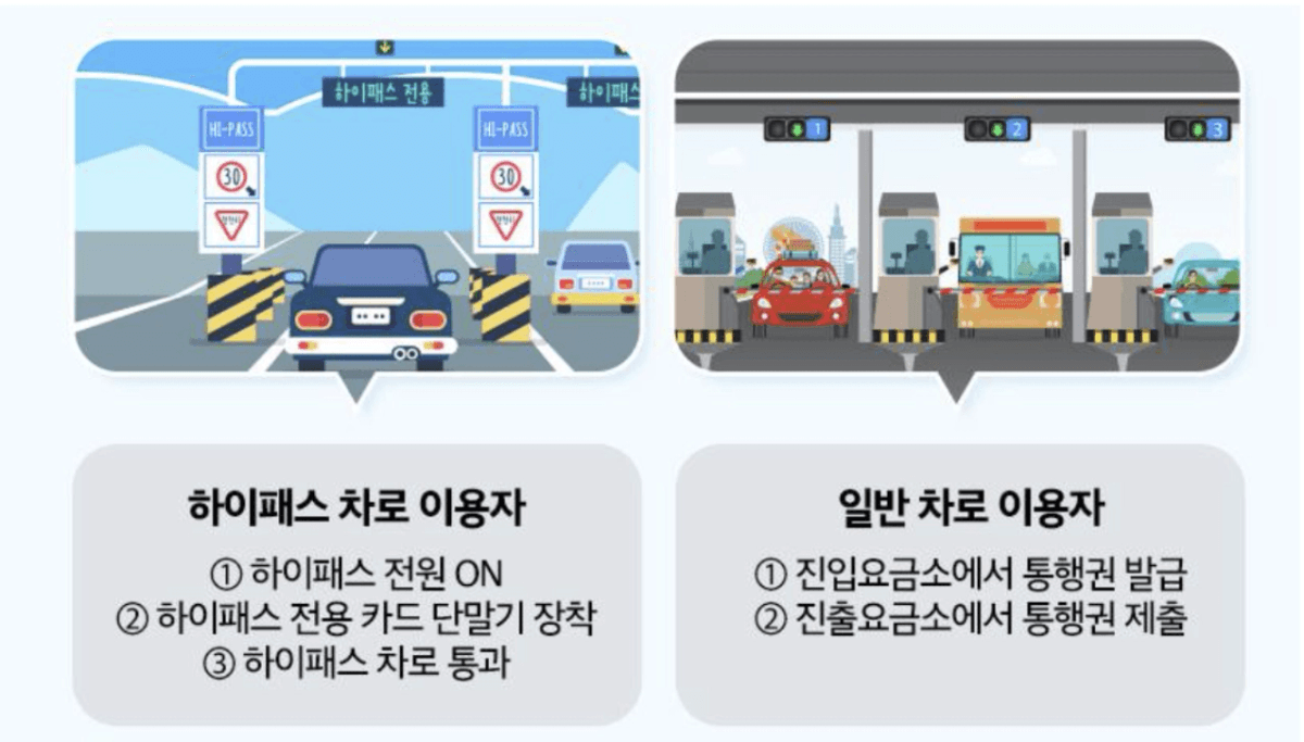 - 하이패스 차량 하이패스를 사용하는 차량은 하이패스 단말기를 정상적으로 작동시켜 하이패스 차로를 그대로 이용하면 통행료가 자동으로 면제됩니다.