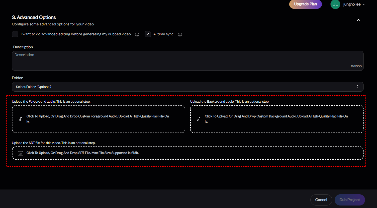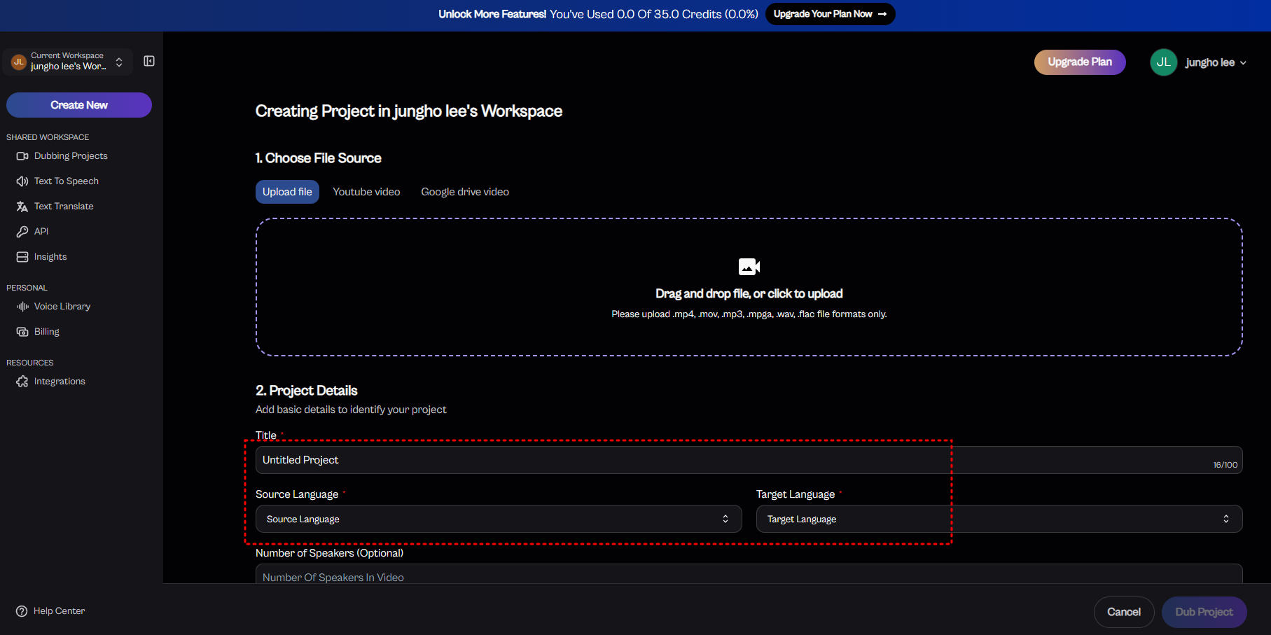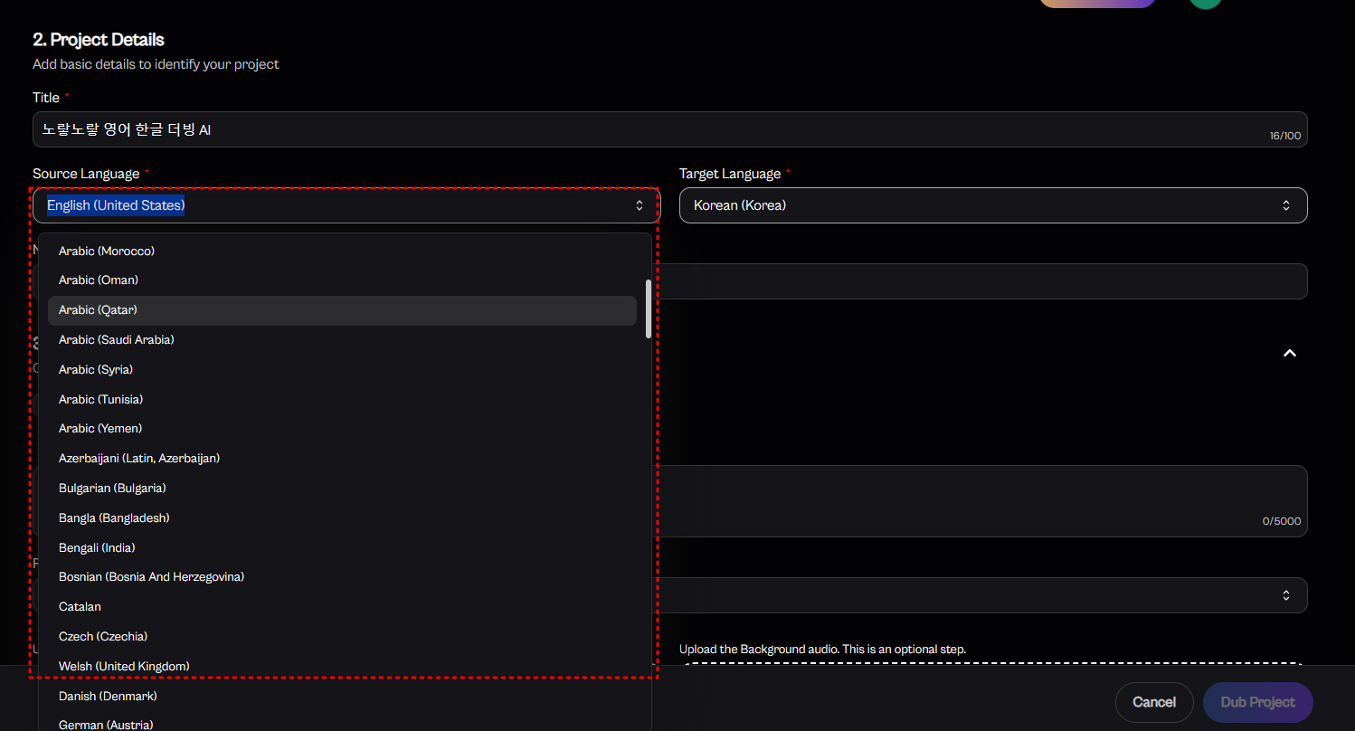 구글 계정으로 로그인한 후, 더빙하고자 하는 언어를 선택하고 영상을 업로드하면 자동으로 한국어로 더빙된 결과물을 받을 수 있습니다.