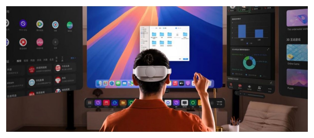 피코4 울트라는 멀티태스킹을 지원하는 파노라마 작업 공간 기능을 제공합니다.