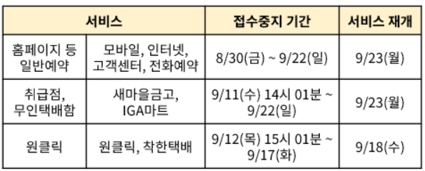 - 재개일: 9월 19일(목)부터 정상 운영 재개