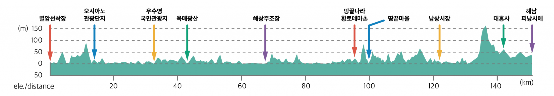 전체 경로: 해남 자전거 스탬프 투어의 전체 경로는 GPX 파일로 제공되며, 참가자는 이를 다운로드해 카카오맵 또는 사이클링 컴퓨터(가민, 와후 등)를 통해 주행 경로를 확인할 수 있습니다.