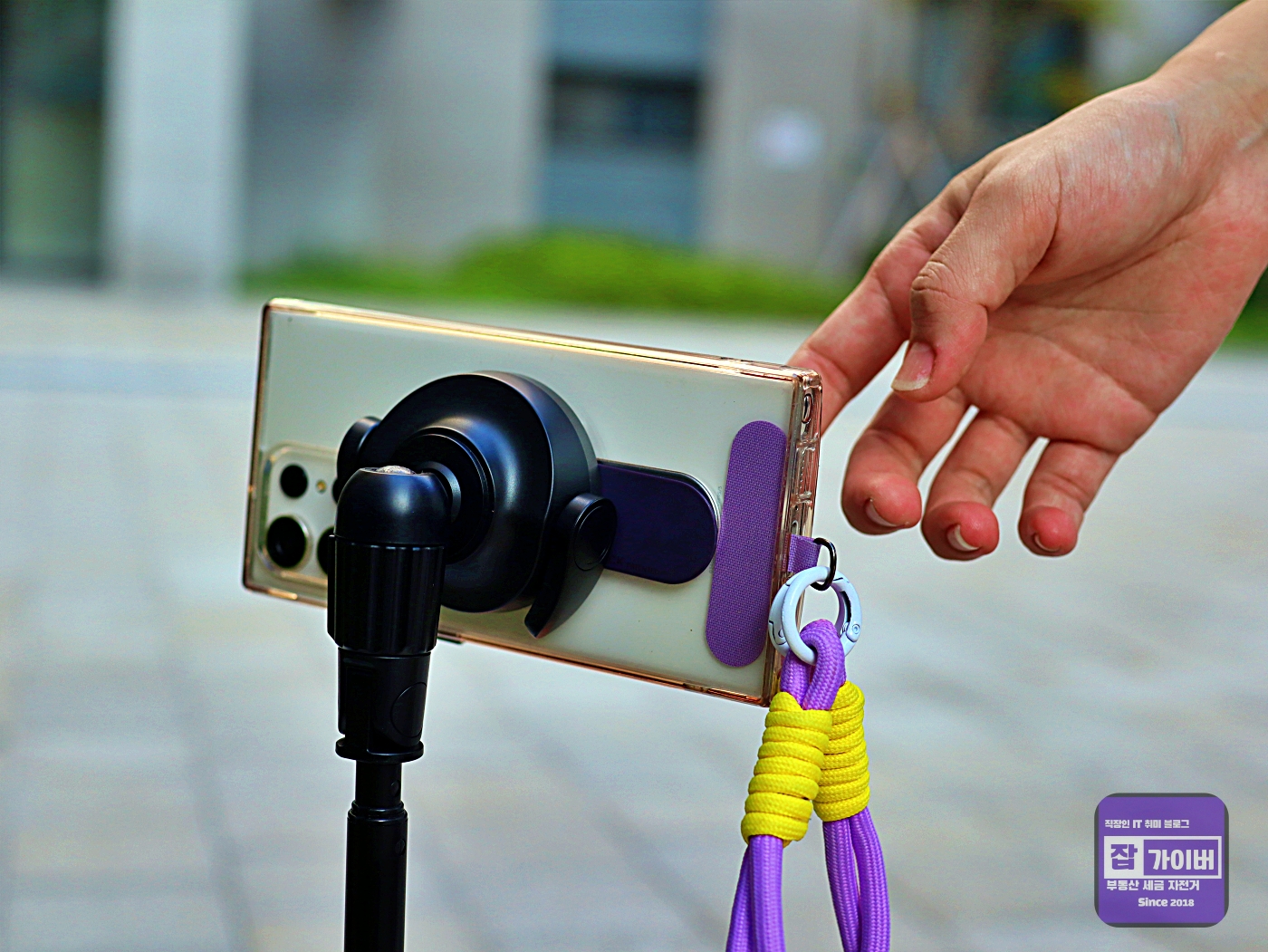 저는 개인적으로 스티커를 사용하지 않고, 접이식 홀더를 꺼내 스마트폰을 고정시켰습니다. 바람이 많이 부는 바닷가에서도 갤럭시 S24 울트라 같은 무거운 스마트폰도 안정적으로 고정할 수 있었죠.