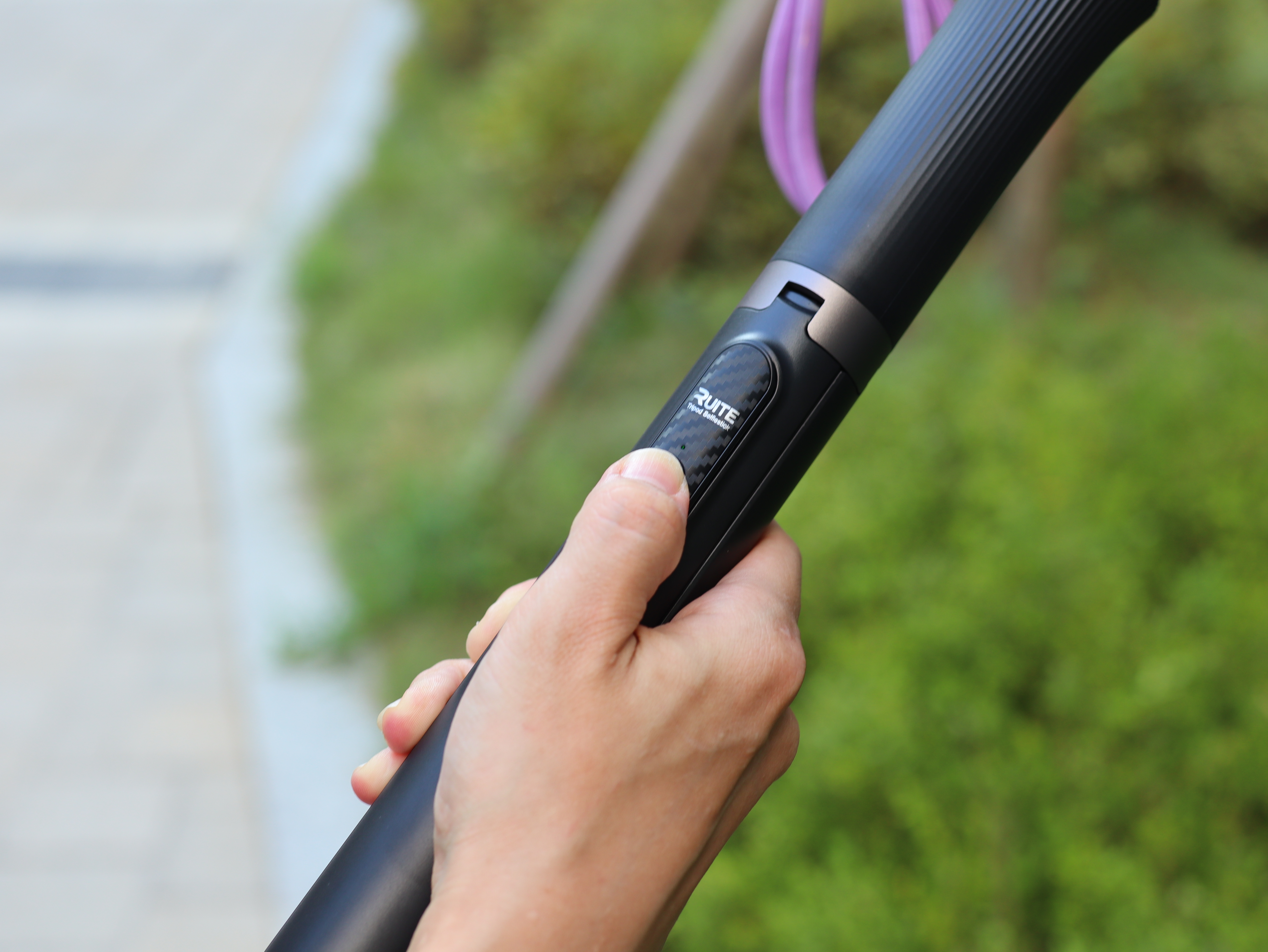 #무선셀카봉이라는 점도 큰 장점입니다. 셀카봉 손잡이에 블루투스 리모컨이 부착되어 있어 잃어버릴 염려가 없습니다. 리모컨은 탈부착이 매우 간편하며, 크기가 작아 손에 딱 감기는 느낌이라 사용하기 편리합니다.