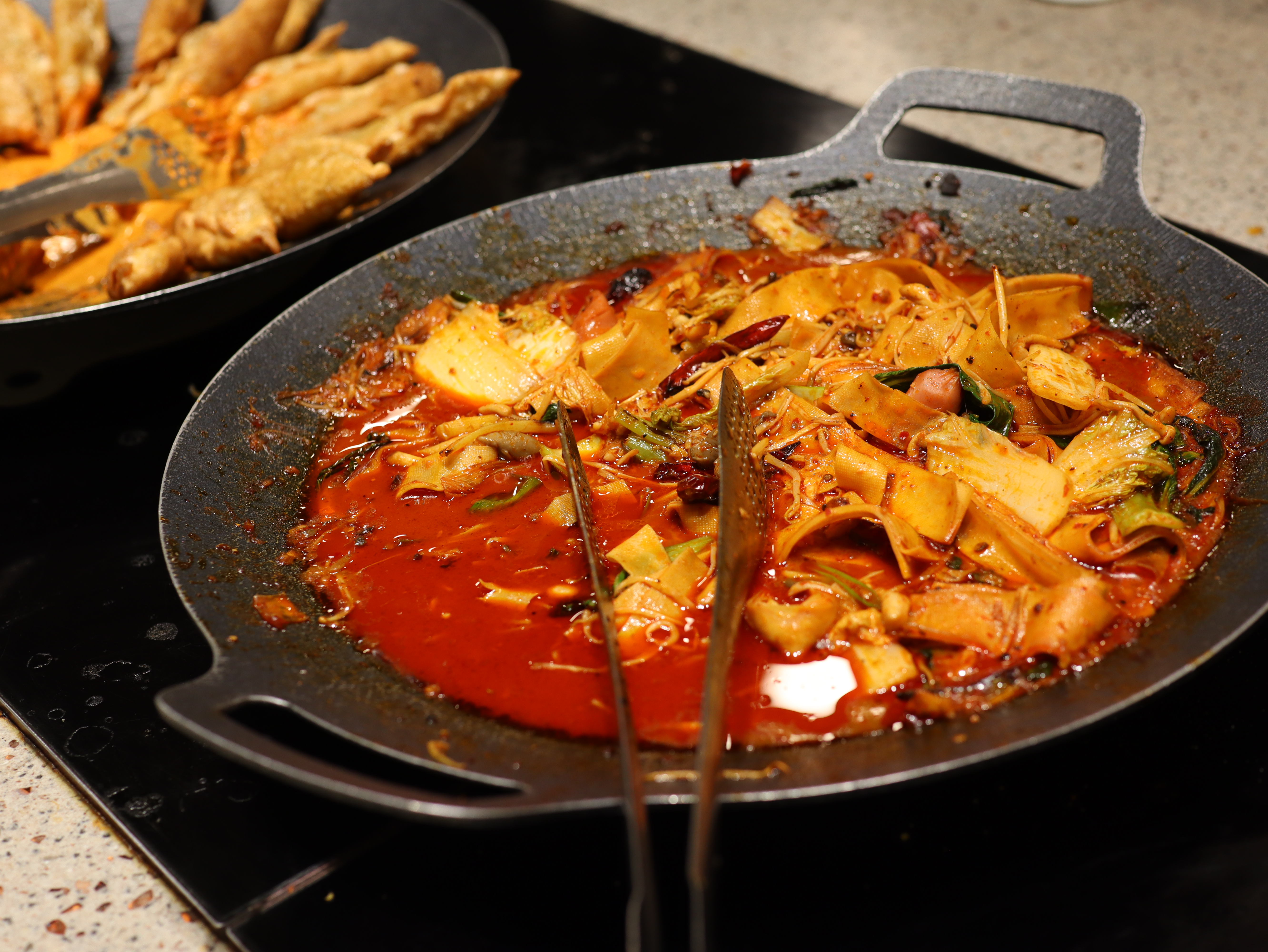 다양한 육수를 제공하는데, 야채버섯 육수와 스키야키 육수가 특히 인기가 많아요. 저는 야채버섯 육수와 얼큰 육수를 선택해 보았는데, 두 가지 맛을 비교하며 즐기는 재미도 쏠쏠하더군요. 후식으로는 와플과 아이스크림 코너가 있어 식사 후 깔끔하게 마무리하기 딱 좋았답니다.