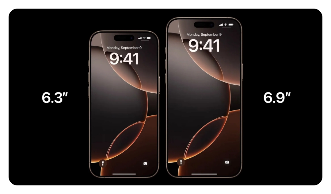 | 해상도 | 2,556 x 1,179 픽셀 | 2,622 x 1,206 픽셀 | 2,868 x 1,320 픽셀 |