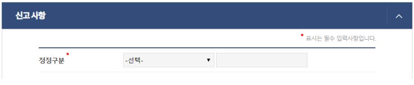 신청서 상단에 있는 주의사항을 확인한 후, ‘정정’을 선택하고 다음 단계로 진행합니다.
