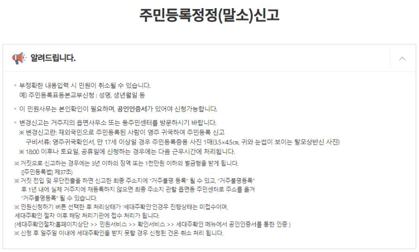 주민등록정정(말소)신고 신청