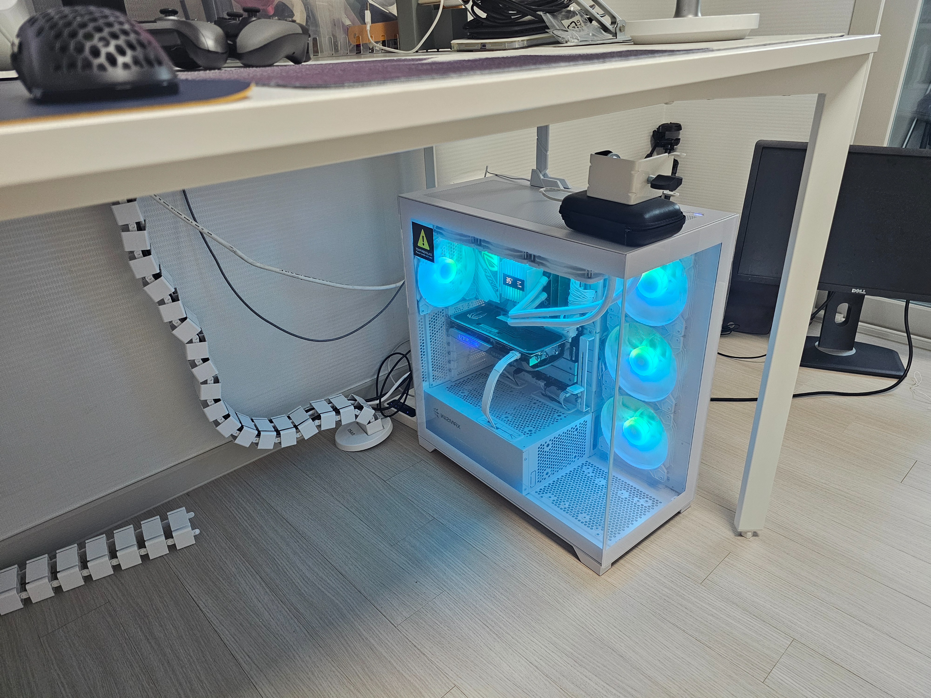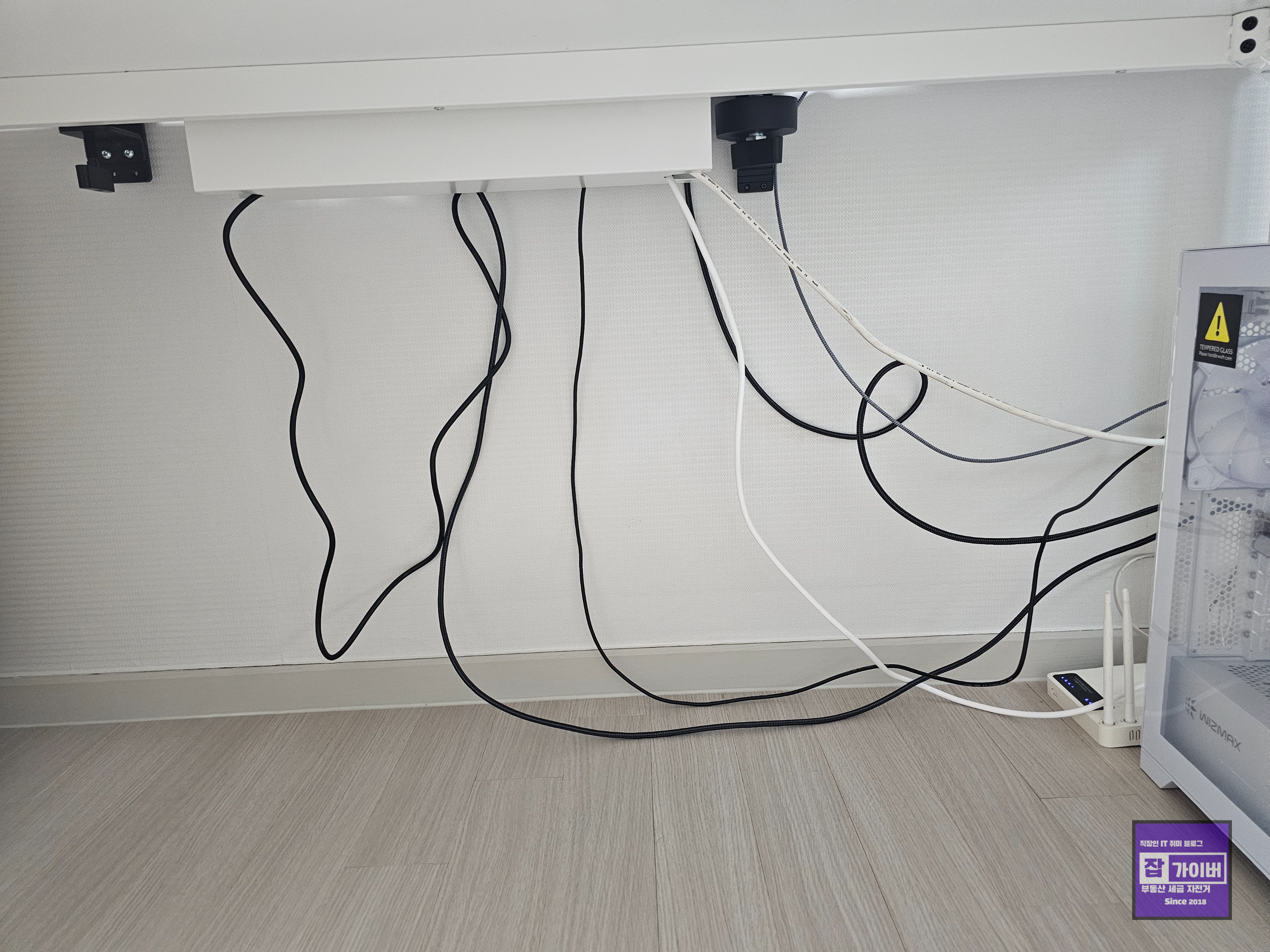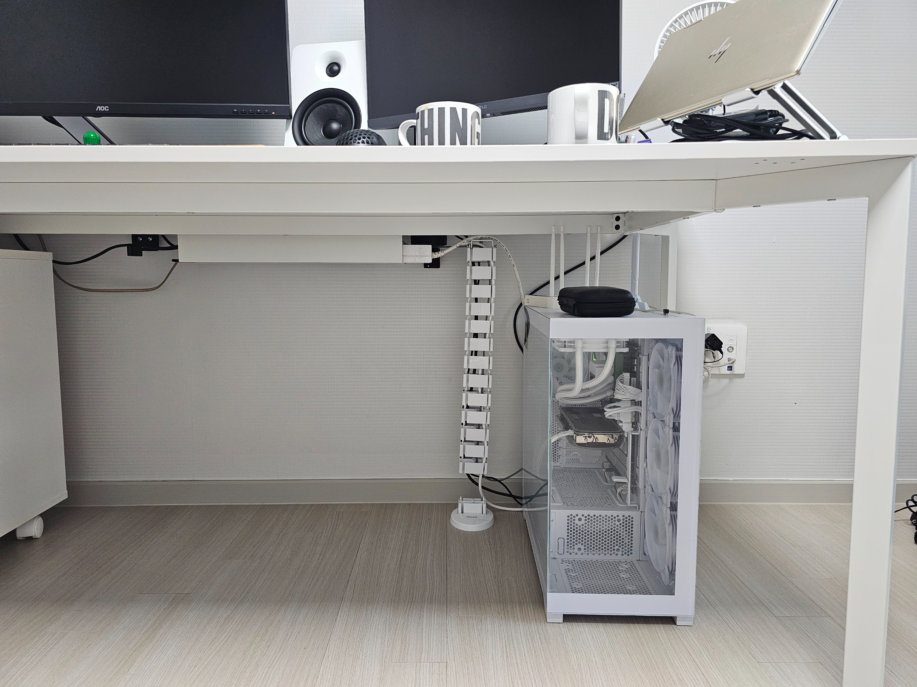 그렇게 컴퓨터와 모니터 케이블 정리를 통해 작업 공간이 더욱 깔끔해졌고, 책상 아래의 전선 정리가 이전보다 훨씬 수월해졌습니다.
