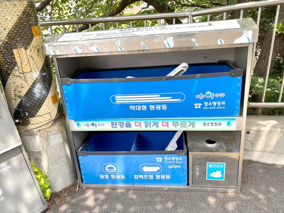 아파트 단지나 가까운 주민센터에 설치된 형광등 전용 수거함을 이용하면 안전하게 처리할 수 있습니다. 만약 형광등이 깨졌다면, 불연성 쓰레기봉투에 담아 버려야 합니다.