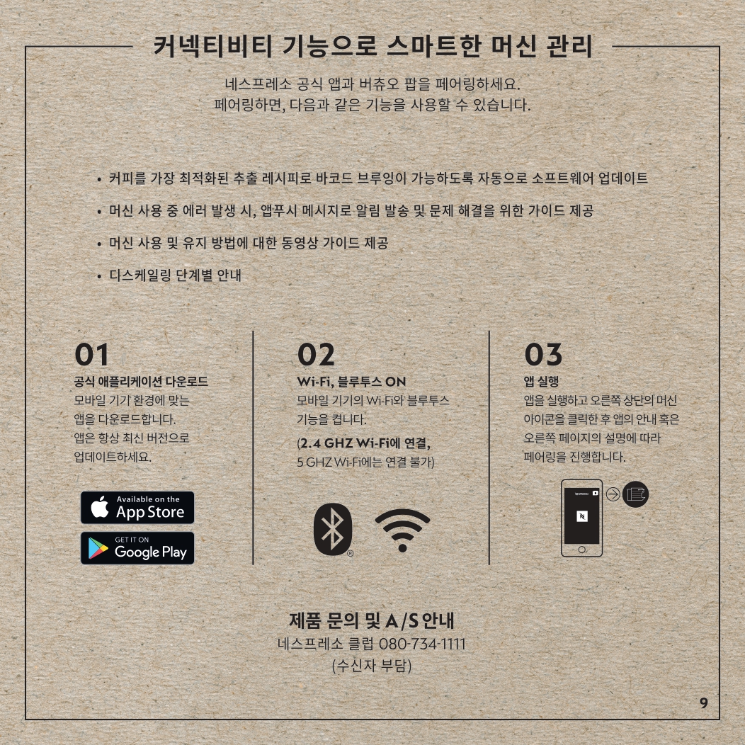 네스프레소 앱으로 버츄오 기기 연동 및 유지관리 메뉴 접근