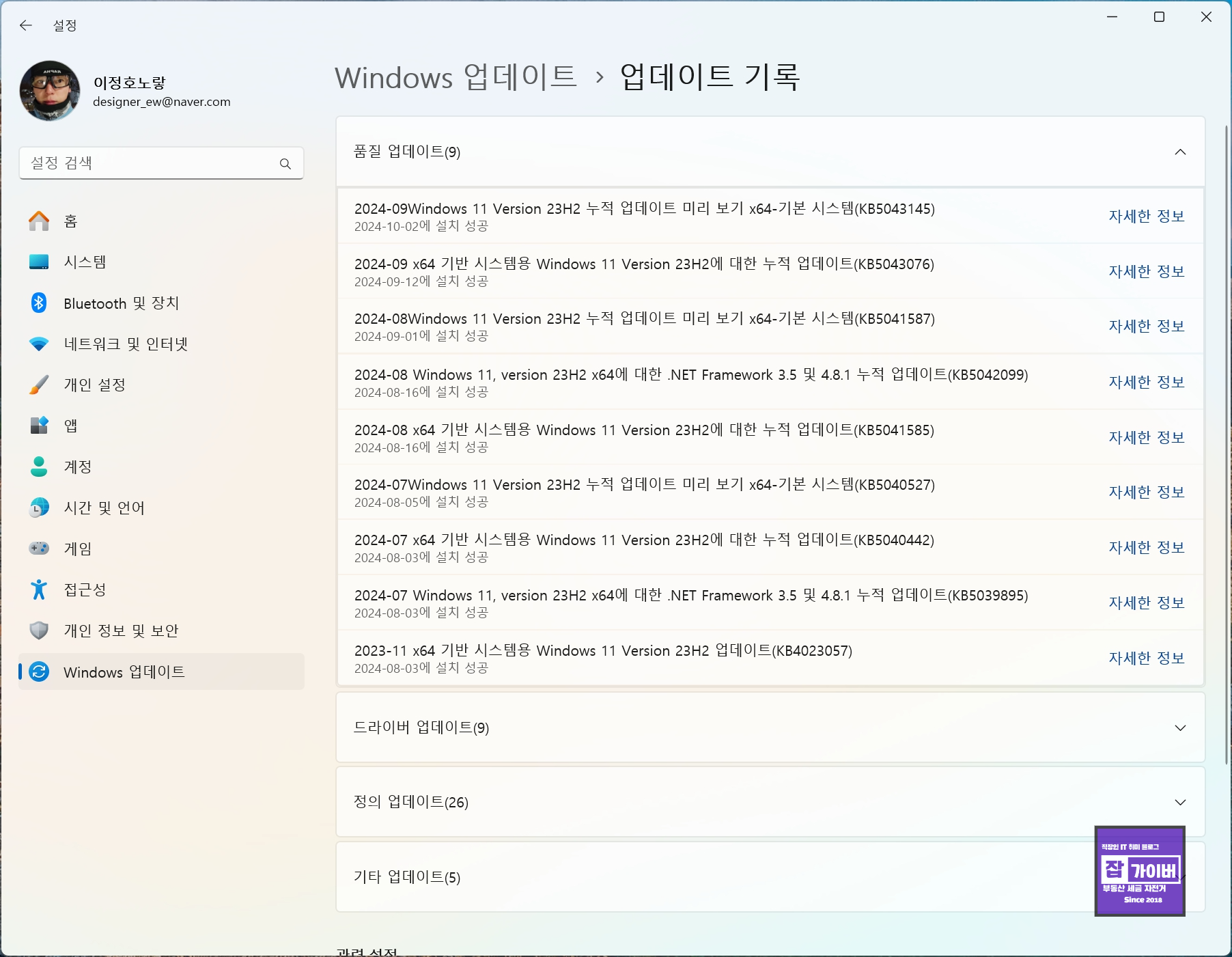 | 윈도우11 24H2 업데이트 버그파일 삭제 불가 9GB 이슈 (0) | 2024.10.14 |