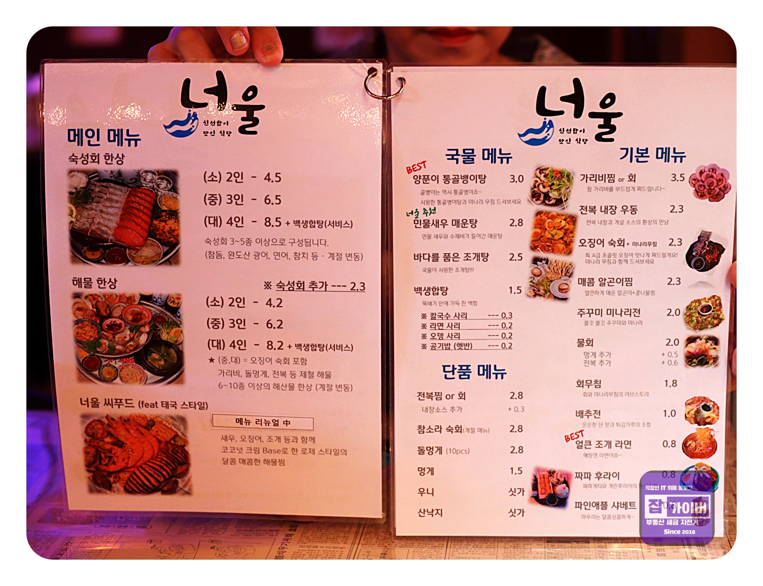 발산역 근처에서 이자카야를 찾는 분이라면 꼭 한 번 와봐야 할 곳이죠. 너울은 발산역과 마곡역 근처에서 찾아보기 드문 해산물 전문 횟집으로, 각종 해산물 메뉴가 가득합니다.