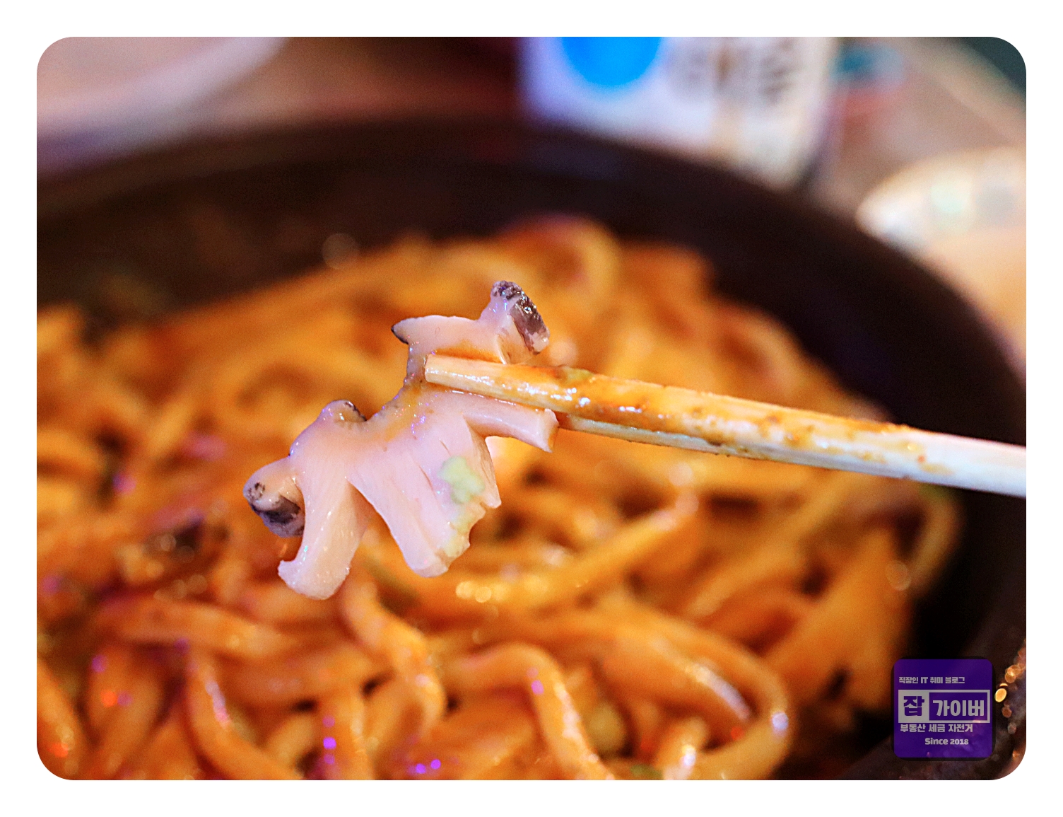 면발과 내장이 어우러진 이 특별한 우동은 마치 전복 본연의 맛을 온전히 느낄 수 있도록 만들어져 있어 해물 한 상과 함께 먹기에 아주 훌륭한 조합이었습니다.