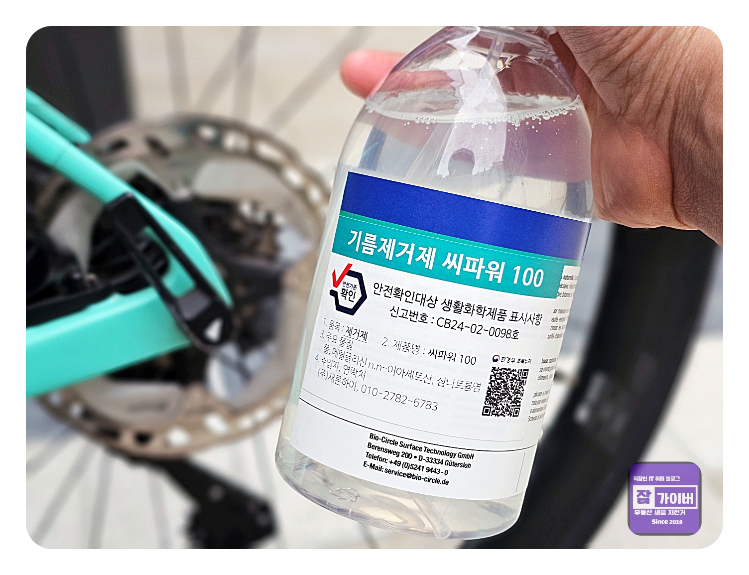 그리고 사용 후에 남은 용액은 흐르는 물에 버리지 않고, 개별 용기에 넣어 기름을 걷어내고 나면 다시 맑은 상태로 재사용할 수 있습니다. 이러한 점에서 바이오써클의 제품은 자전거 필수템으로 자리 잡을 만한 가치가 있다고 생각됩니다.