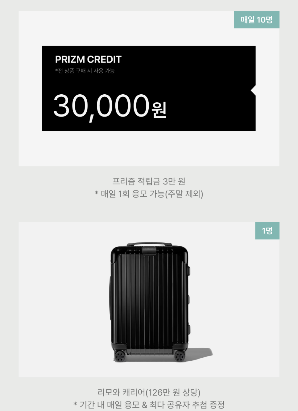 혜택 1 매일 10명씩 프리즘 적립금 3만원 증정 이벤트