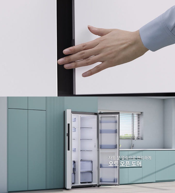 이럴 때 오토오픈도어 기능은 정말 큰 도움이 됐어요. 냉장고 문을 가볍게 터치하기만 하면 문이 자동으로 열려서 손을 사용하지 않고도 물건을 넣고 뺄 수 있거든요. 요리할 때마다 정말 편리해서 너무 좋았어요.