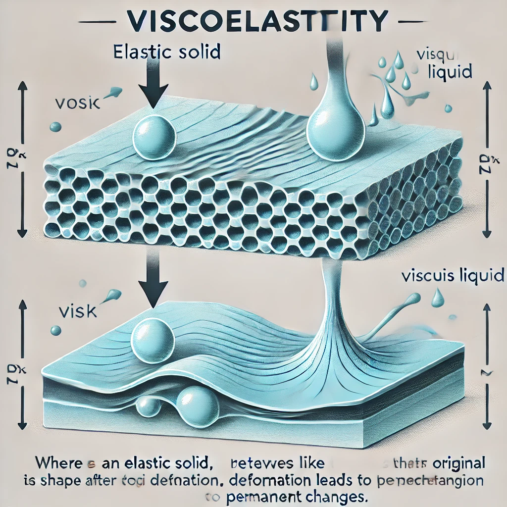 점탄성(Viscoelasticity)이란, 물질이 외부 힘을 받았을 때 고체처럼 변형하려는 성질(탄성)과 액체처럼 흐르려는 성질(점성)을 동시에 가지는 현상입니다.