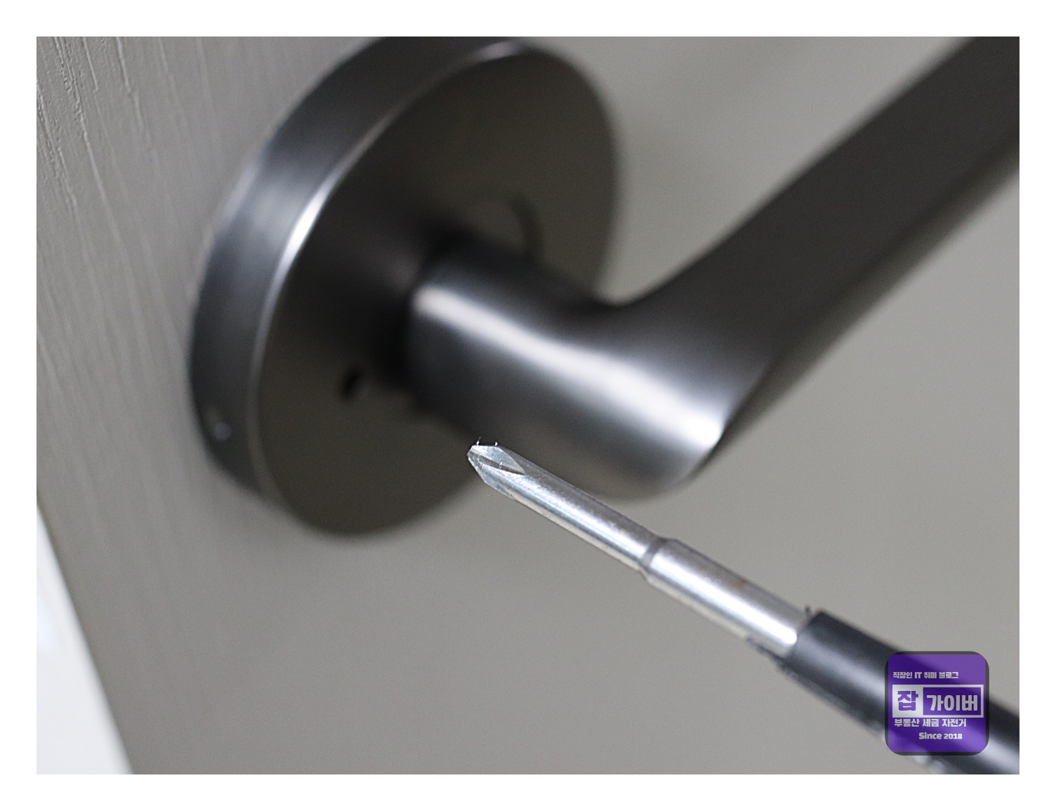 - 드라이버 사용법: 손잡이 구멍에 일자 드라이버를 넣고 돌리면 쉽게 열림.