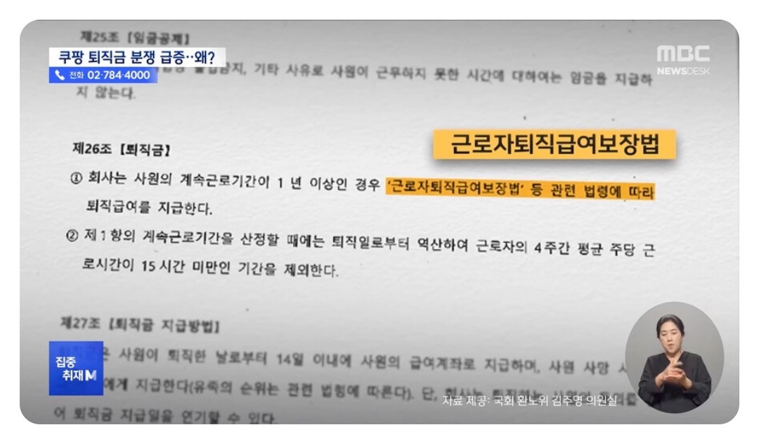 쿠팡 물류센터 일용직과 계약직 아르바이트 퇴직금 임금체불