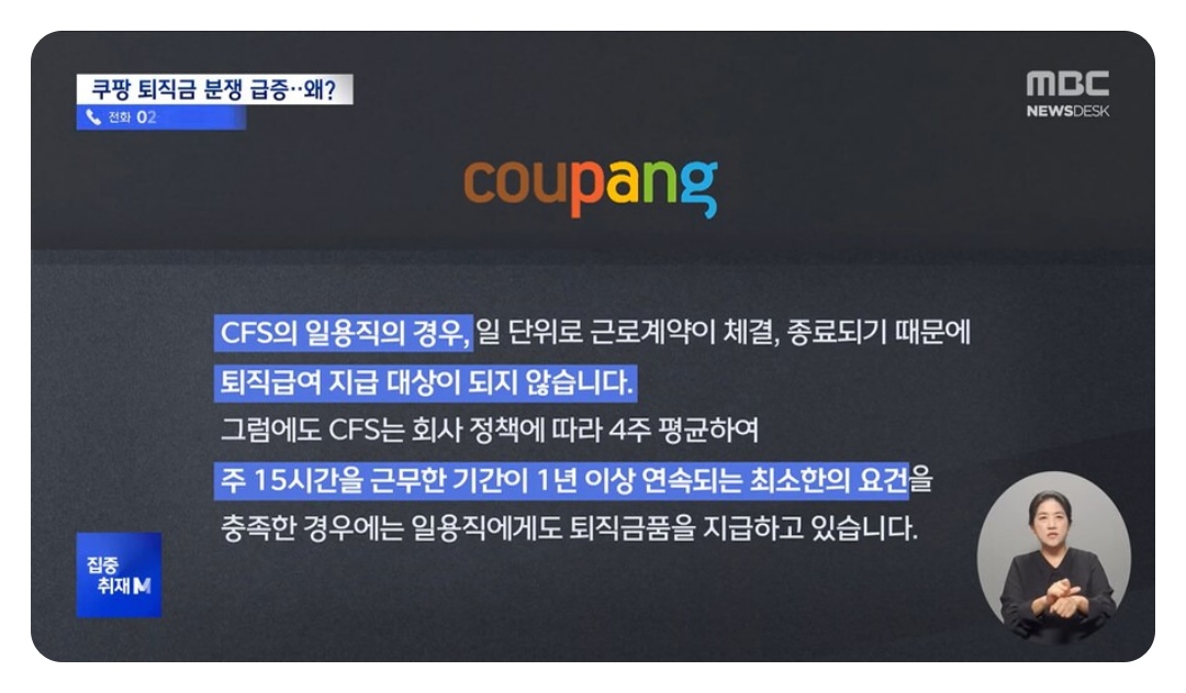 쿠팡 CFS의 단기사원 기준에는 “근로일 사이 공백이 1개월 이상이면 다음 근로일부터 새로 기산” 규정이 포함되어 논란이 있었죠.