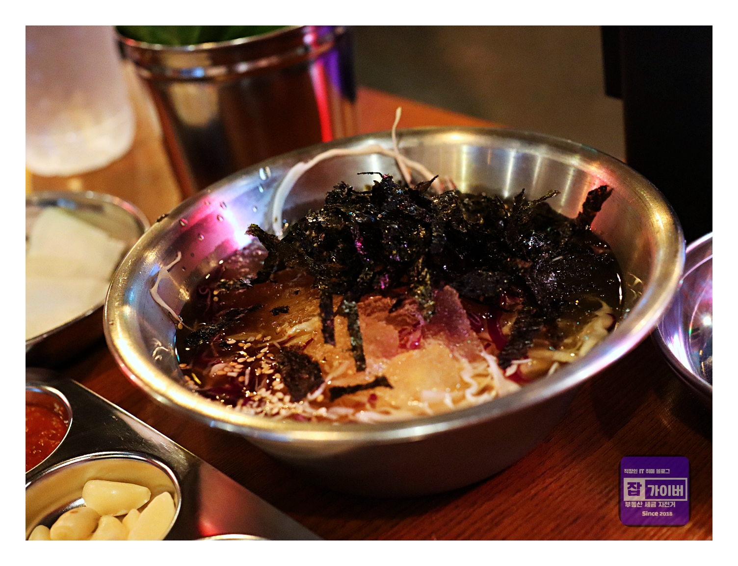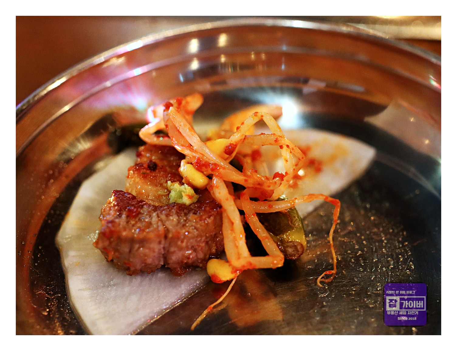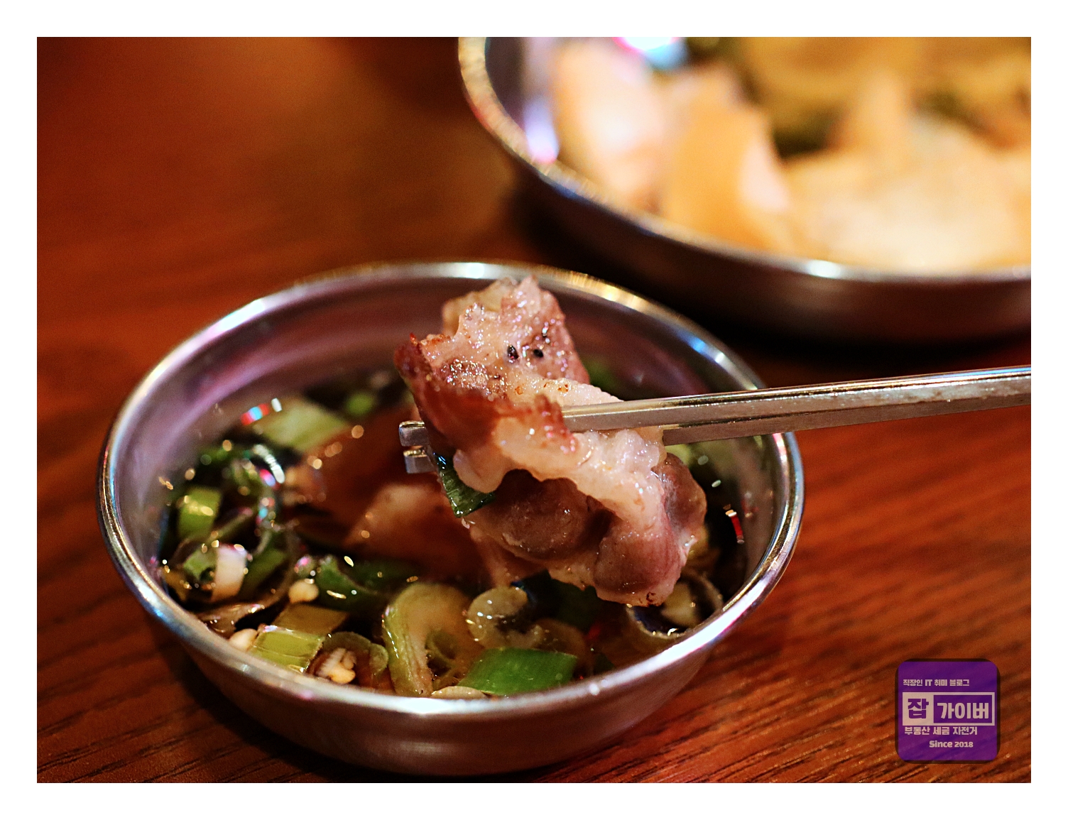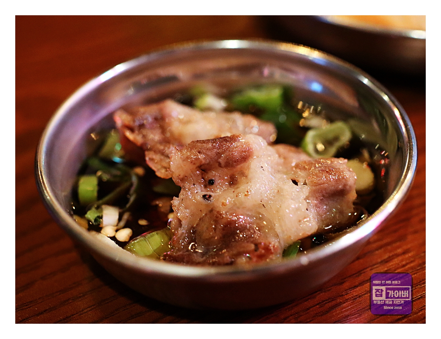 그리고 고기를 찍어 먹는 소스 구성도 훌륭했습니다. 고기에 찍어 먹는 간장 소스 안에 알싸한 청양고추가 더해져서 입안에서 감칠맛이 폭발했고, 멜젓도 고기의 풍미를 더욱 살려줬어요.