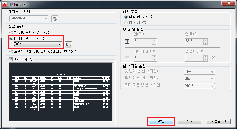 엑셀 표 -> 오토캐드 실시간 연동하여 불러오기 - 데이터링크