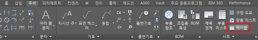- 주석 탭 > 시트 > 테이블 아이콘을 선택합니다.