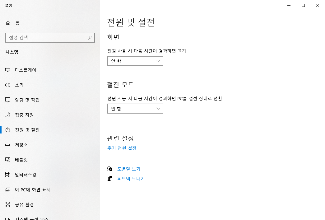이때, 해당 컴퓨터의 절전 모드를 해제한 후 다시 접속을 시도합니다. 제어판의 전원 옵션 메뉴에서 디스플레이 끄기 및 절전 모드 설정을 해당 없음으로 변경하여 문제를 해결할 수 있습니다.
