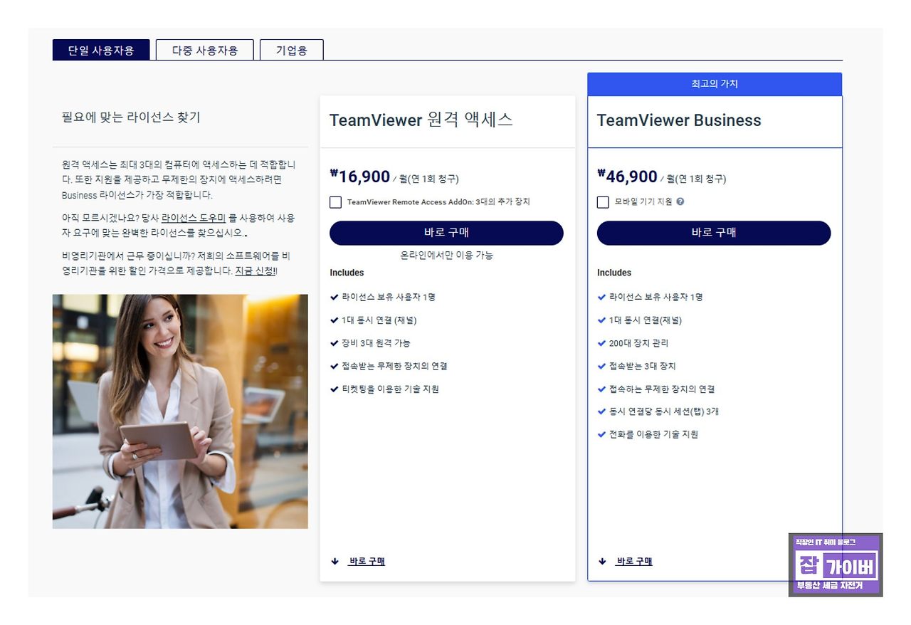 추가적인 원격 컴퓨터 수를 허용하려면 계정 업그레이드가 필요하며, 500개의 추가 장치를 등록할 경우 약 150만 원(VAT 별도)의 비용이 발생합니다.