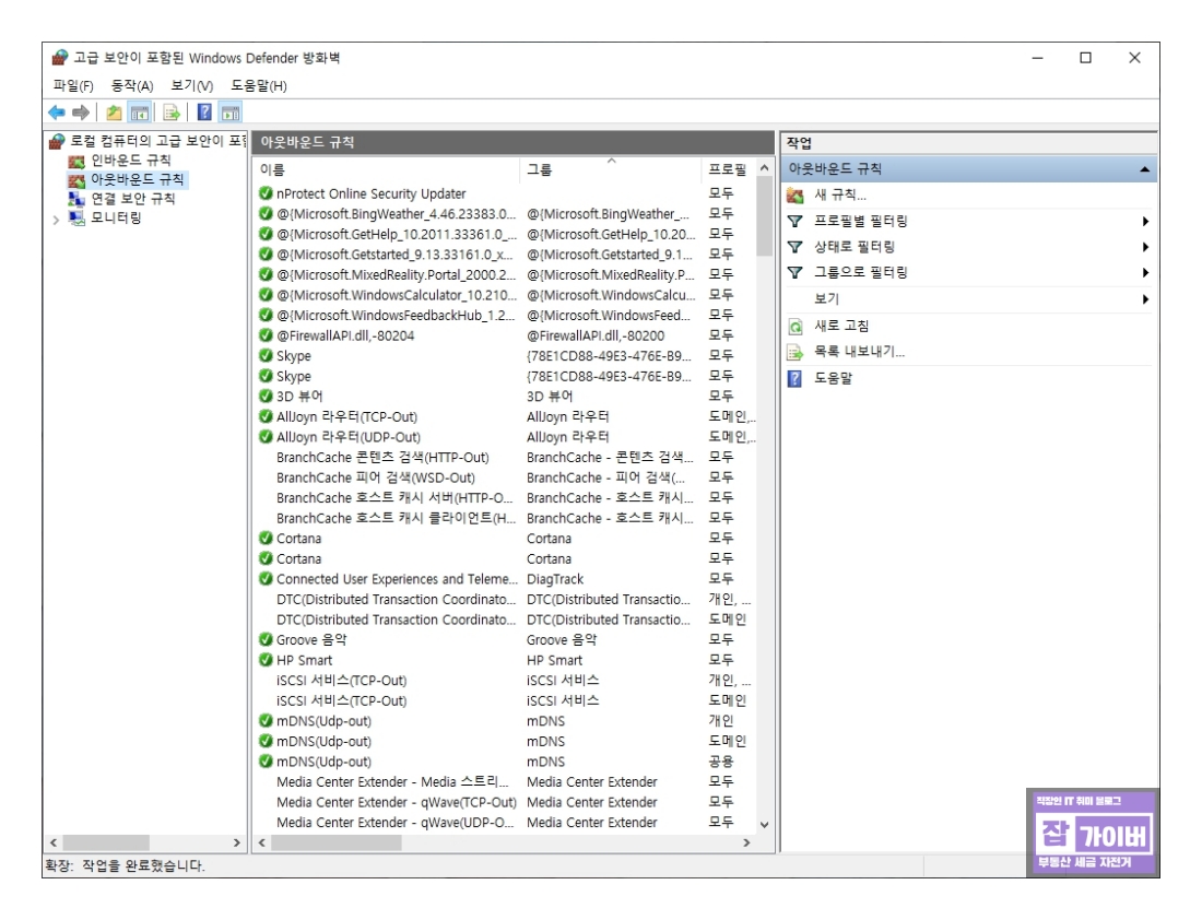 아웃바운드 규칙 설정