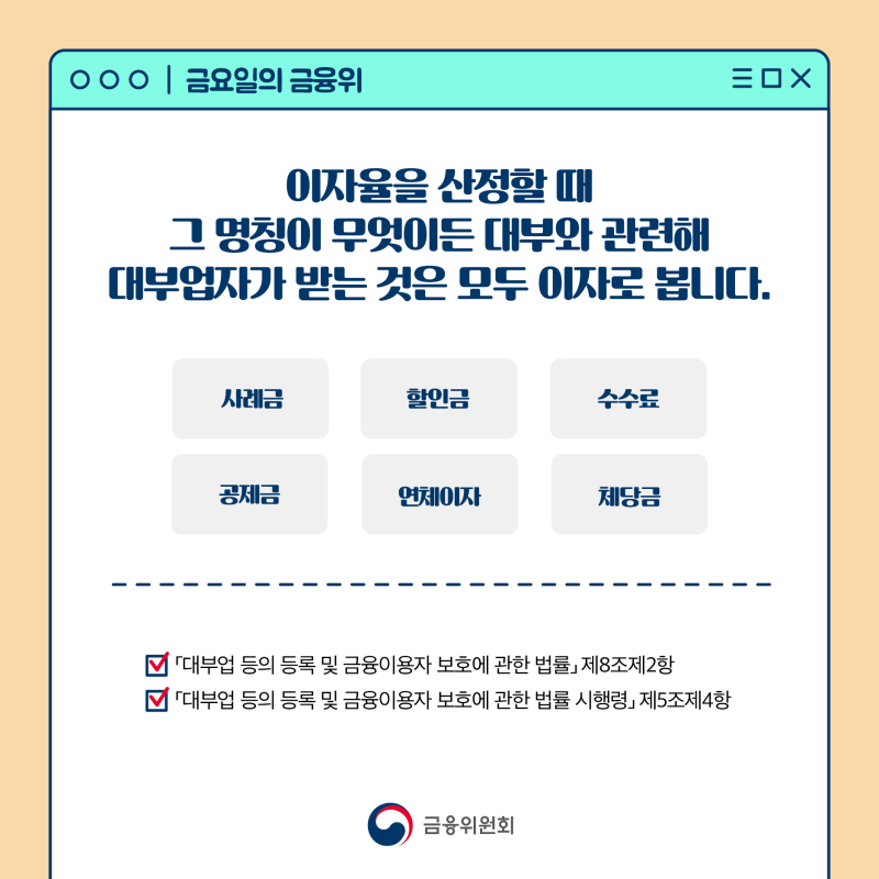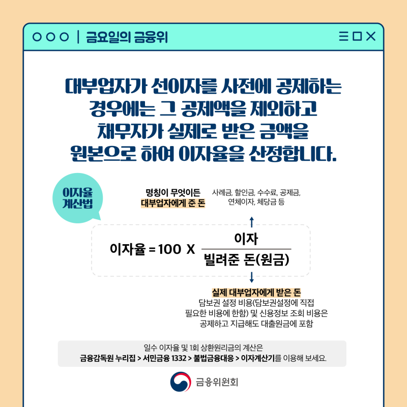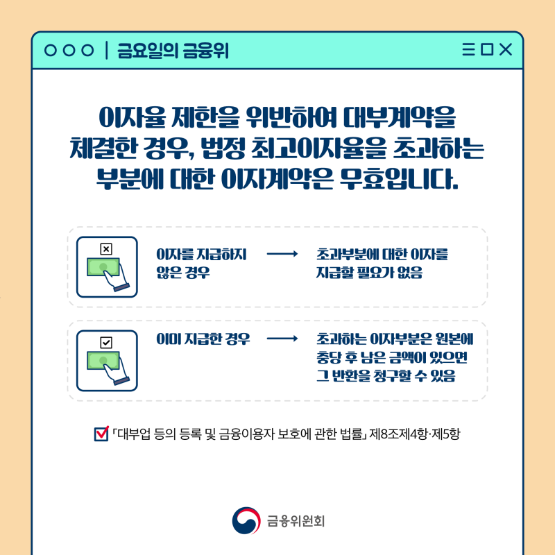 금융회사뿐만 아니라 개인 간의 거래에서도 법정 이자율을 초과할 경우 법적인 문제가 발생할 수 있으므로, 거래 시 유의해야 합니다.