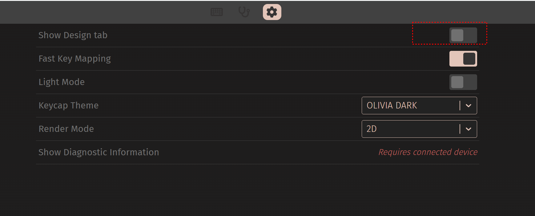 먼저 설정탭으로 이동 후 Show Design Tab을 활성화해주세요