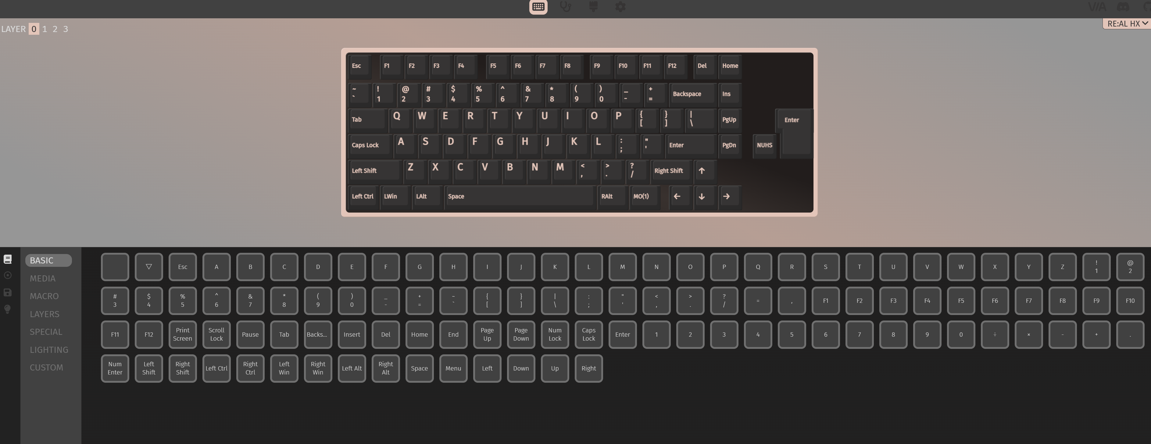 이후 키보드 레이아웃으로 이동하면 현재 사용중인 키보드와 배열이 같아지고 변경하고 싶은 키패드나 단축키 매크로 설정이 가능해집니다.