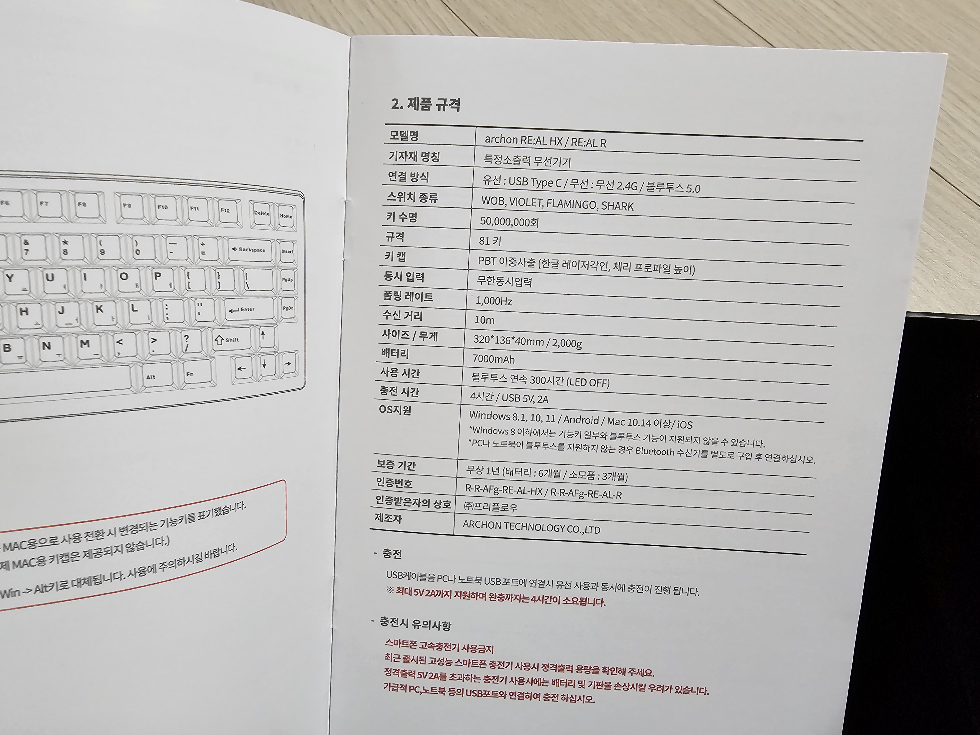 | Archon RE:AL HX | FN+탭 등* (블루투스 5.0 지원) | – (BT 우선, 멀티 페어링 가능) | 전용 동글(2.4GHz)·유선·블루투스 모드 지원 | RGB 백라이트 (지원 여부 제조사 매뉴얼 참고) | – (윈도 우/ Mac 전환: FN+M, 잠금 / 초기화 FN + Esc ) | Fn키로 음량/재생 등 멀티미디어 기능 지원 |