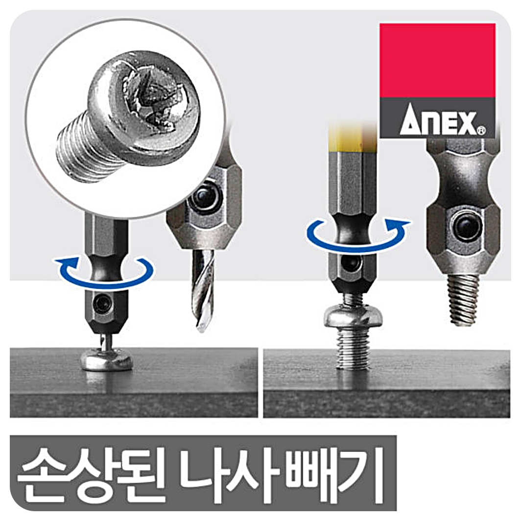 나사 중심에 작은 구멍을 먼저 뚫어준 후, 히다리탭 또는 리무버 비트를 드릴에 장착해 반시계 방향(왼쪽 회전)으로 천천히 돌려 빼내는 방식입니다.