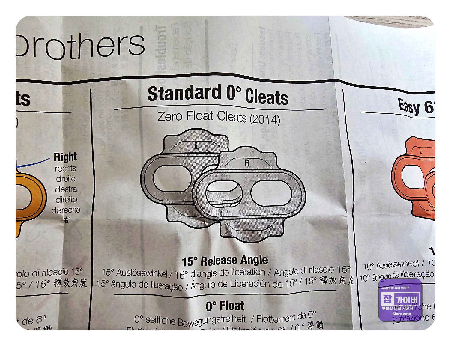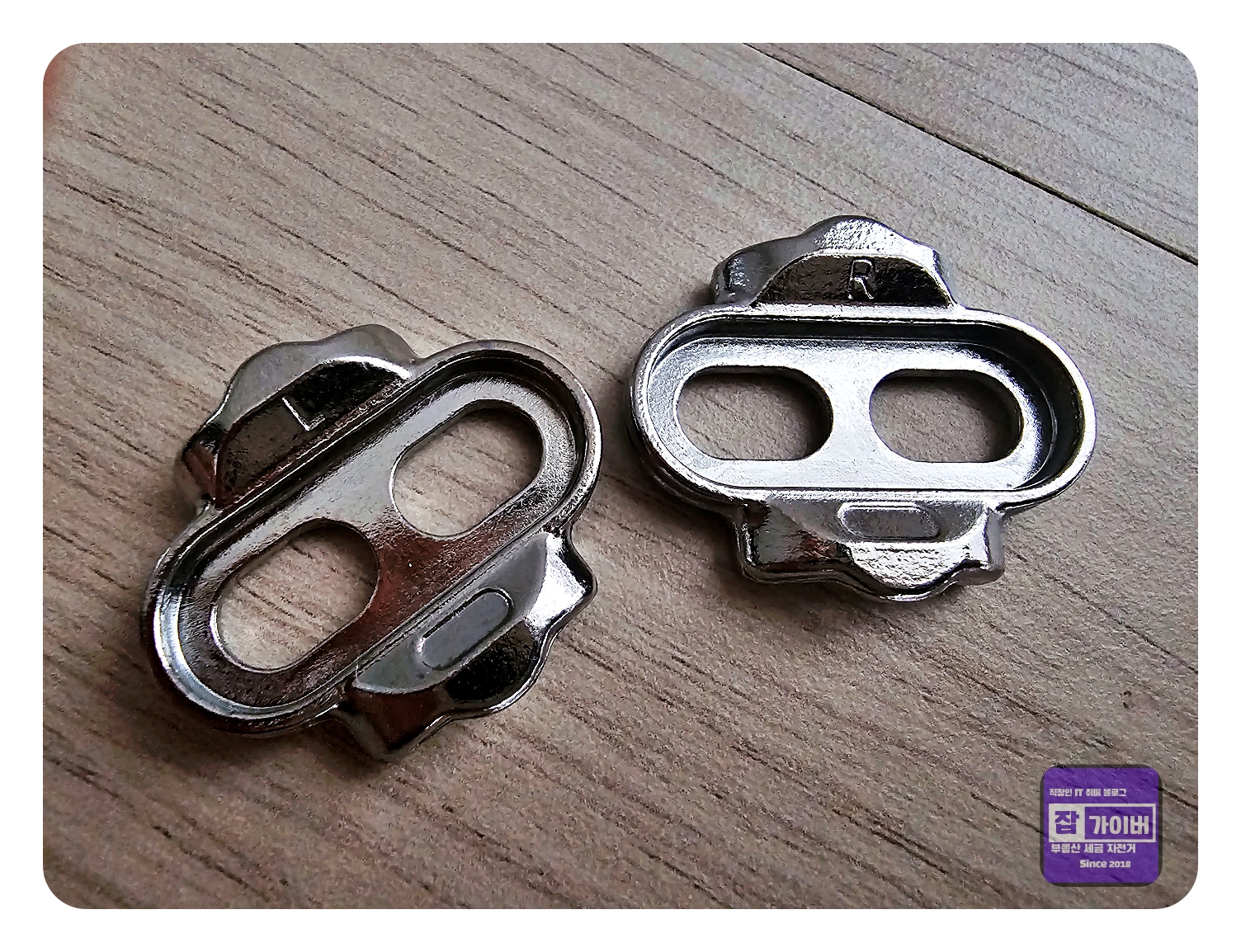 금색 클릿은 6도, 은색 클릿은 0도로 구성되어 있어 자신의 라이딩 스타일에 맞는 각도를 선택할 수 있도록 되어 있습니다. 특히 발목의 유동성을 줄이려는 저로서는 은색의 0도 클릿이 더 적합하다고 판단하여 선택하게 되었습니다.