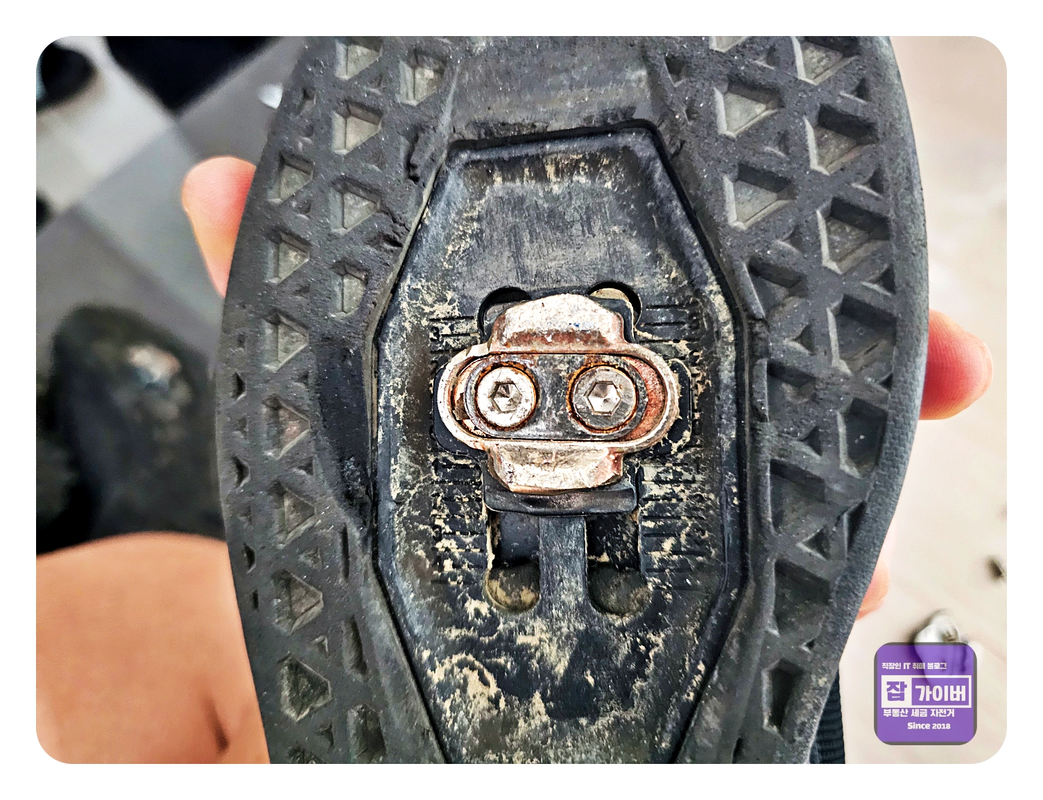 크랭크브라더스 클릿은 초기 장착 시 시마노 클릿과 약간의 구조적 차이가 있지만, 설치 과정 자체는 동일합니다. 기존 시마노 MTB 클릿을 제거하고 동일한 위치에 크랭크브라더스 스텐다드 0도 클릿을 장착했습니다.