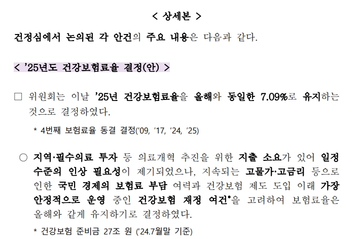 2025년 건강보험요율 동결 배경