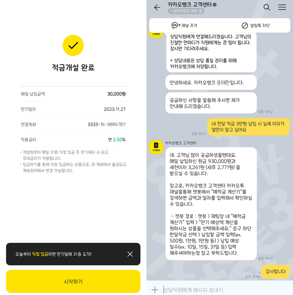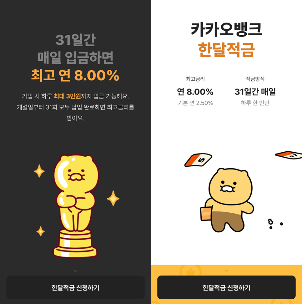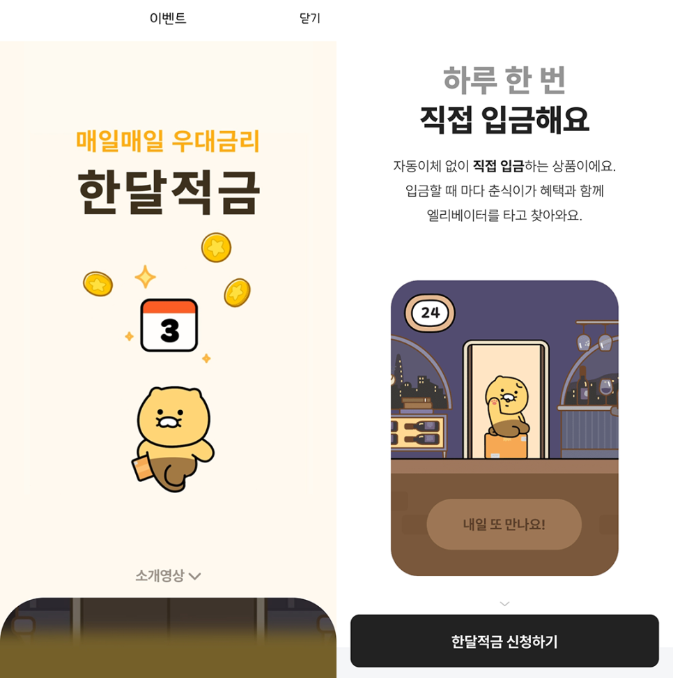 카카오뱅크 한달적금 이용 시작