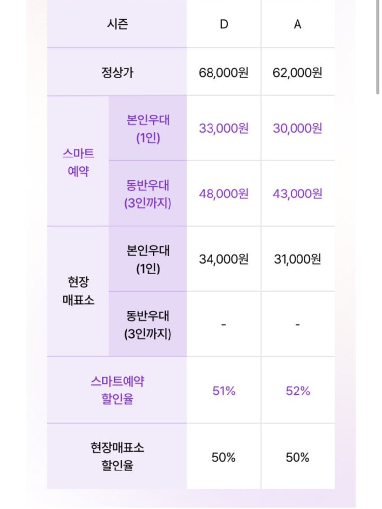 - 예: 365 스탠다드 대인 290,000원, 소인 230,000원