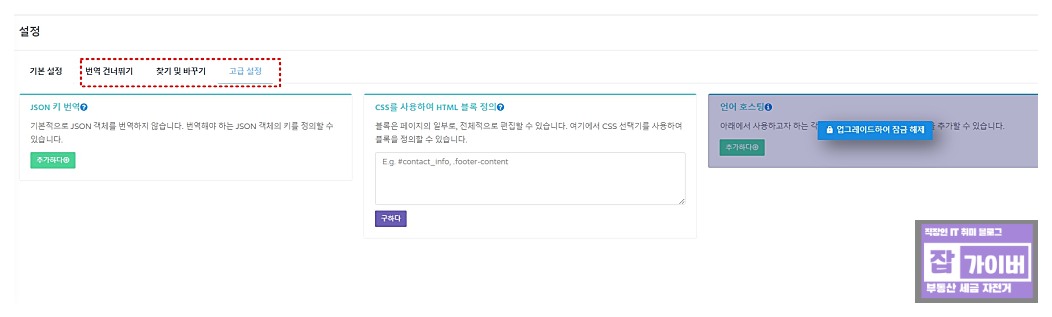 유료결제를 하게 되면 별도의 페이지가 이렇게 제공되는데 여기서 번역페이지 설정 및 결제 그리고 수동번역등이 가능합니다.