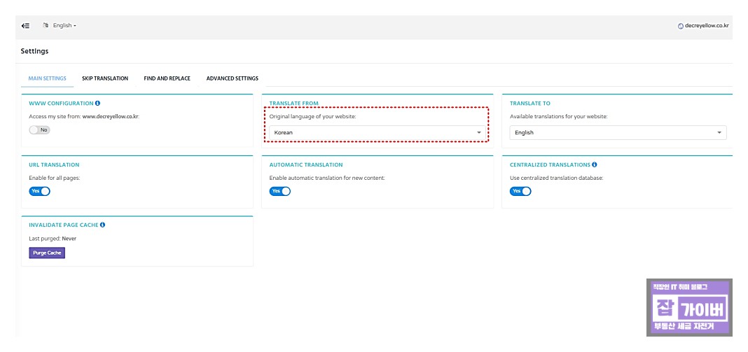 그리고 유료버전을 구입하게 되면 URL이 EN주소가 붙게 되며 전용 번역페이지를 통해 설정이 가능합니다.