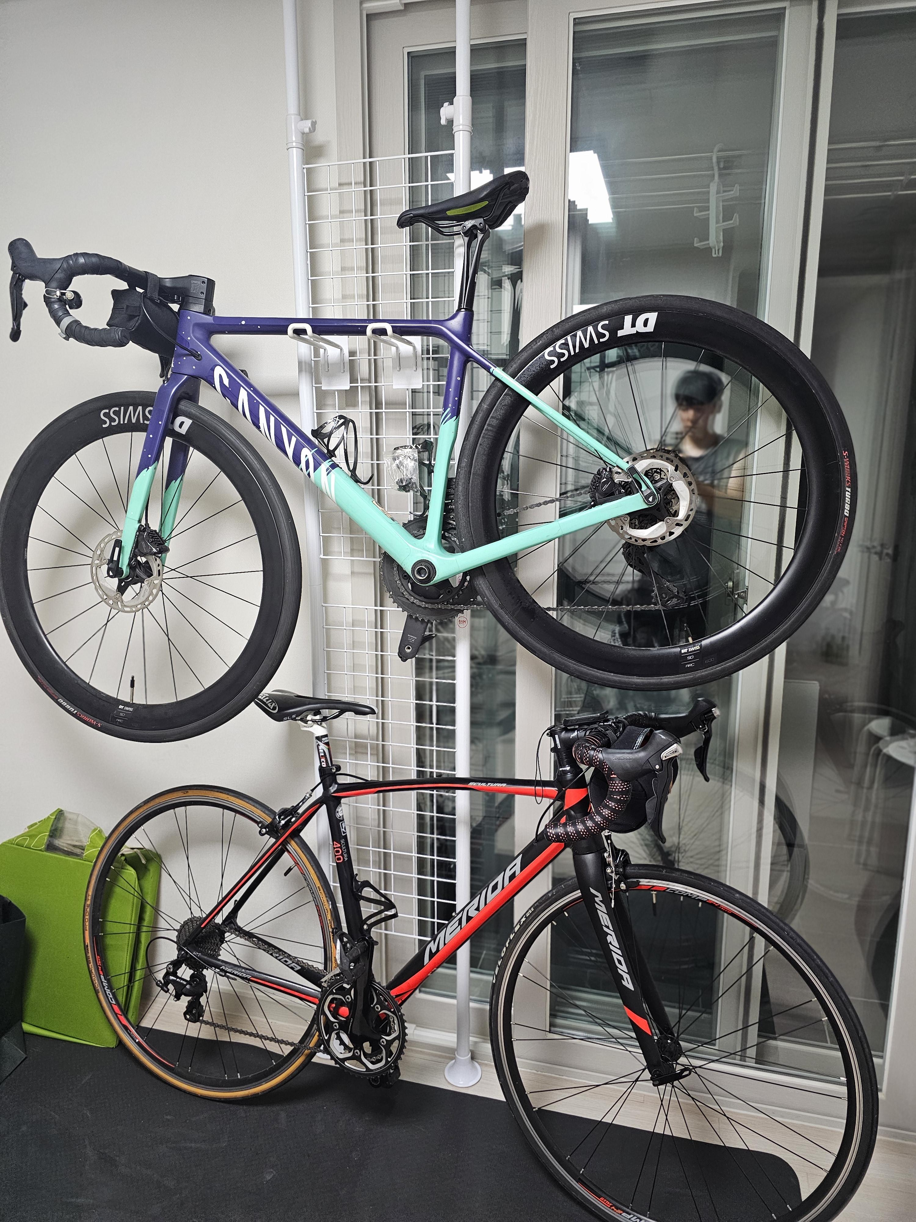 거기에 제 자전거뿐만 아니라 아내의 자전거도 함께 보관해야 하는 상황이어서 고민이 더욱 깊어졌습니다. 게다가 실내에서 사용하는 로라까지 포함해 총 4대의 자전거를 동시에 보관할 방법을 찾아야 했죠.