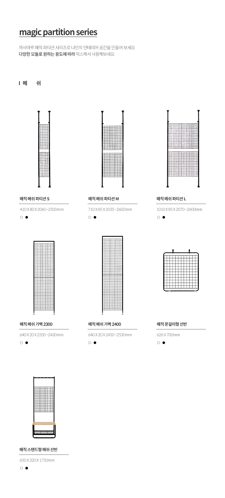 까사마루 매직 파티션 자전거 거치대는 S와 M 두 가지 사이즈가 있는데, 저희는 자전거만 거치할 목적이라 S 사이즈로 흰색을 선택했고 흰색은 벽지와도 잘 어울리고 방이 답답해 보이지 않아서 마음에 들었습니다.