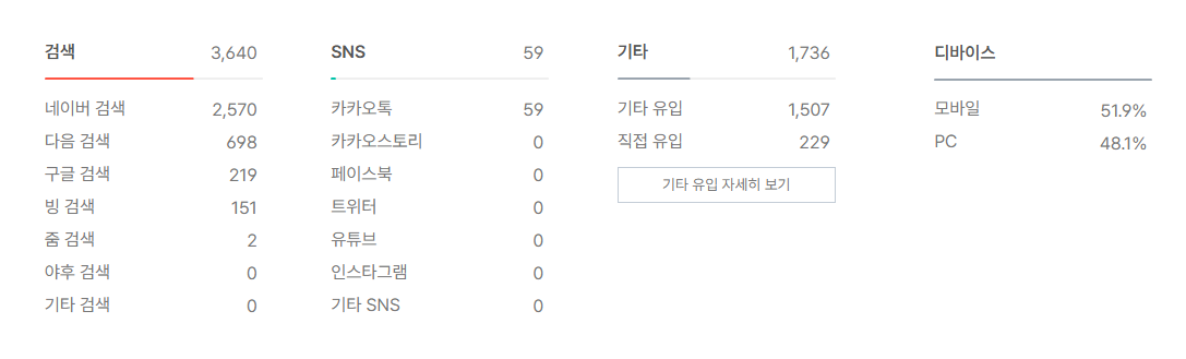 티스토리 또한 구글 검색의 방문자가 다음검색보다 적은 상황