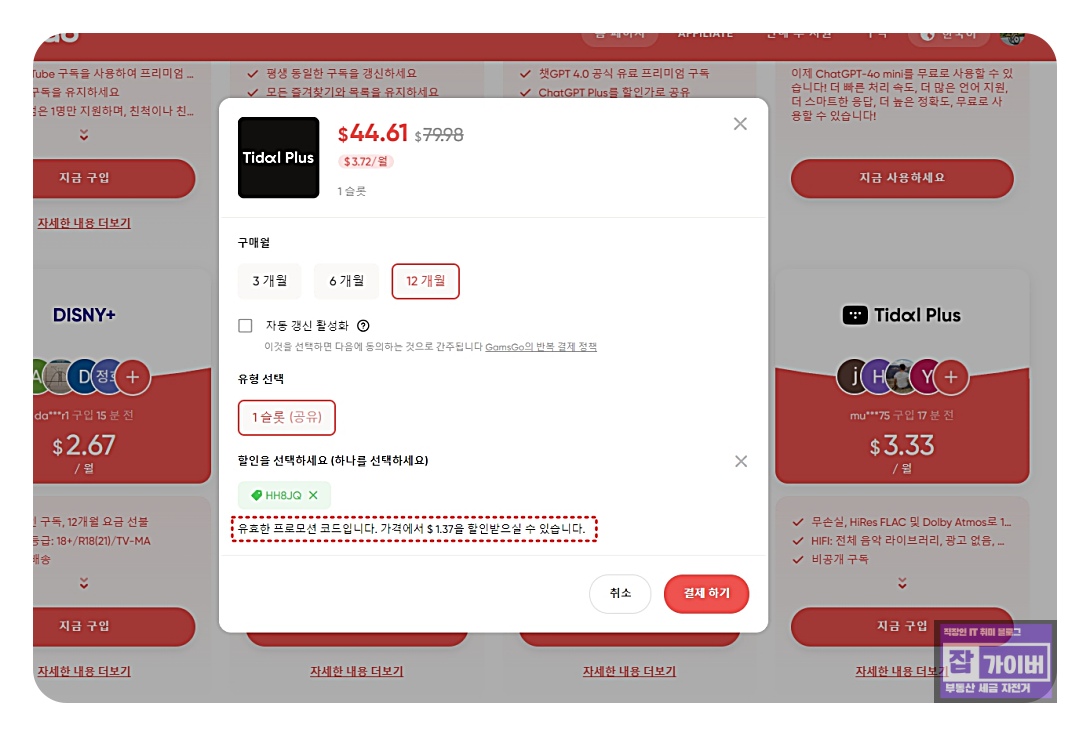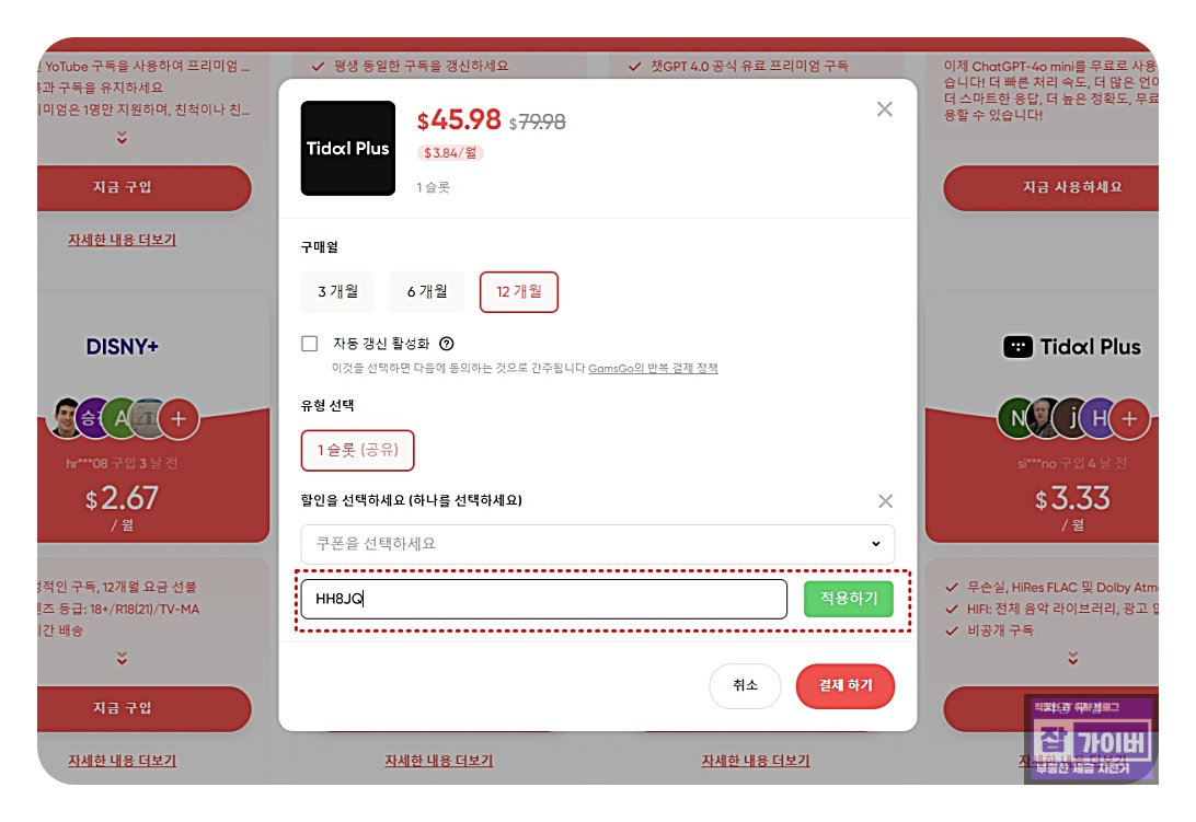 타이달 우회 저렴하게 3천원대 결제방법 - 겜스고 프로모션 할인코드