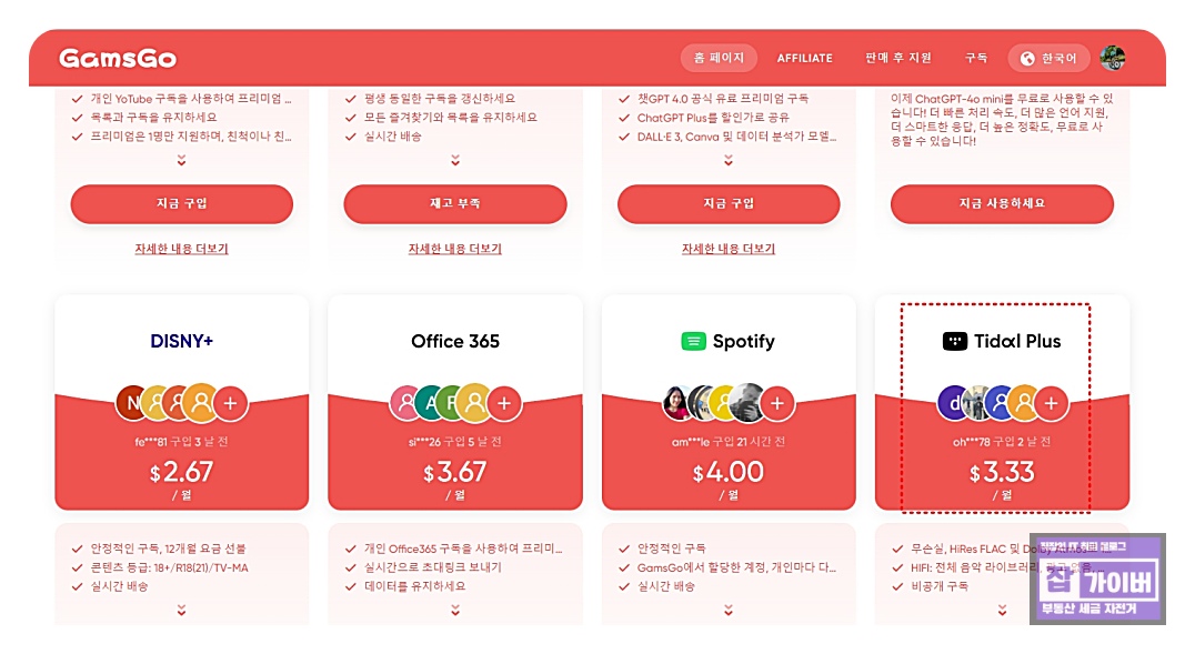 최근에는 VPN 없이도 타이달을 저렴하게 이용할 수 있는 방법이 알려지며 다시금 주목받고 있는데요. 특히 정품 계정을 합리적인 가격에 이용할 수 있도록 도와주는 겜스고(GamsGo) 서비스를 활용하면, 별도 우회 없이도 월 3천 원대에 타이달 플러스 서비스를 안정적으로 즐길 수 있습니다.