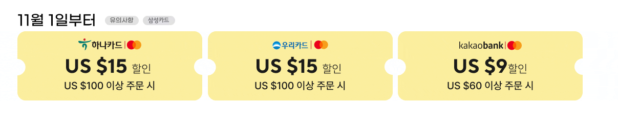 추가로 네이버페이, 우리은행이나 기업은행 같은 결제 수단을 사용하면 또 한 번 15달러 정도의 할인을 받을 수 있더라고요. 이런 기회를 놓칠 수 없죠! 그래서 여러 할인 혜택을 총동원해 봤습니다.