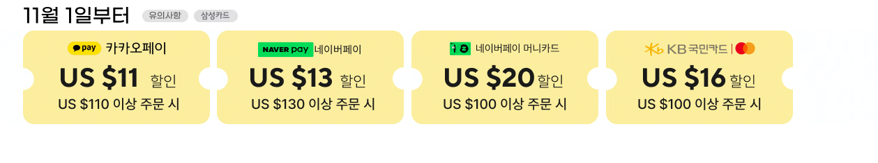 추가로 네이버페이, 우리은행이나 기업은행 같은 결제 수단을 사용하면 또 한 번 15달러 정도의 할인을 받을 수 있더라고요. 이런 기회를 놓칠 수 없죠! 그래서 여러 할인 혜택을 총동원해 봤습니다.