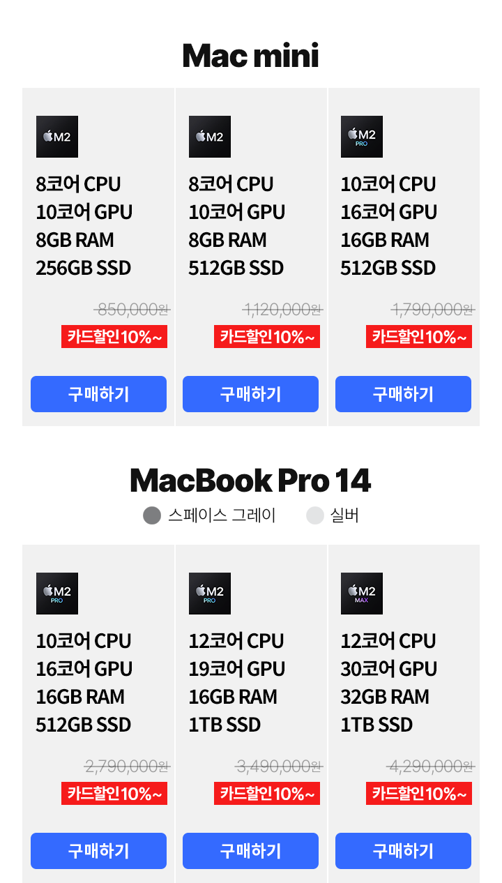 | M4 | 89만원 | 10코어 | 10코어 | 16GB |
